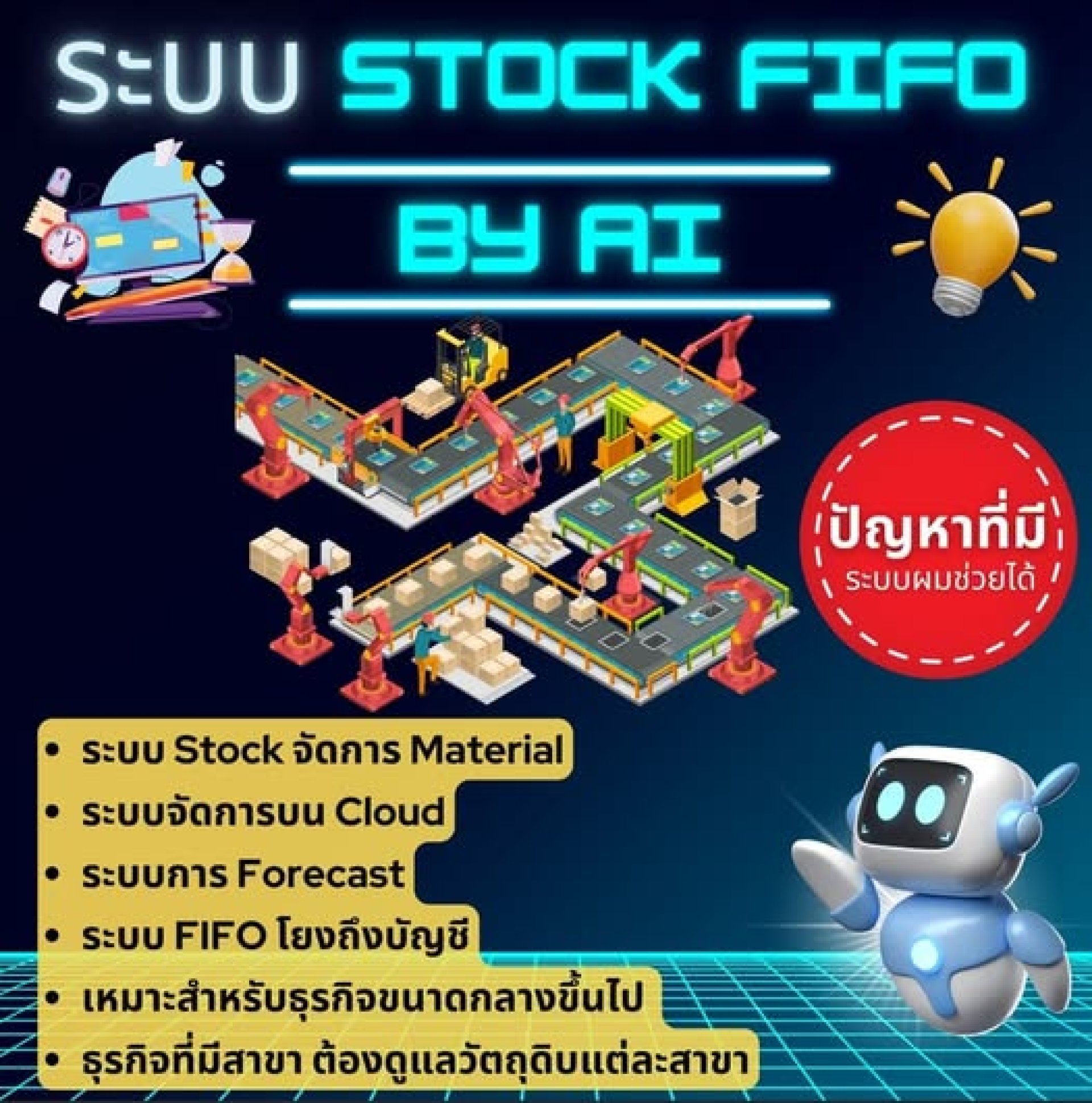 สำหรับผู้ที่ต้องการจัดการ Stock FIFO by AI วางแผนการสั่งสินค้า รับเข้า-จ่ายออก วางแผนคลังสินค้า สำหรับโรงงานผลิต